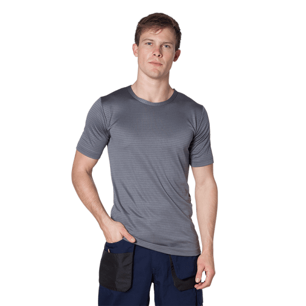 Das bequemste Unterhemd unter Ihrem Lackieranzug. Das BodyGuard® Unterhemd von Colad ist die perfekte Wahl für das richtige Darunter für Ihren BodyGuard® Lackieranzug von Colad oder anderen Lackieranzügen. Gefertigt aus Vogelaugenstricktechnik zur Regulierung der Körperwärme. Das Gewebe enthält 1% Karbon, verfügt dadurch über antistatische Eigenschaften und klebt nicht an Ihrem Körper oder dem Lackieranzug. Im Gegensatz zu den üblichen Baumwoll- oder Nylonhemden zieht dieses Unterhemd keinen Staub an. Darüber hinaus garantiert die enge Passform optimale Bewegungsfreiheit und sorgt für höchsten Tragekomfort über den ganzen Arbeitstag.- Enge, Elastische Passform für optimale Bewegungsfreiheit