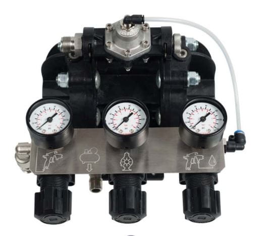 - Optional integrated material pressure regulator – very smooth, consistent delivery