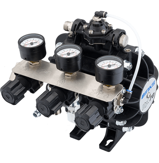 Binks DX70 – air-operated double diaphragm pump with 1:1 ratio for direct material supply to one or two spray guns (industry, workshop & serial production processes).