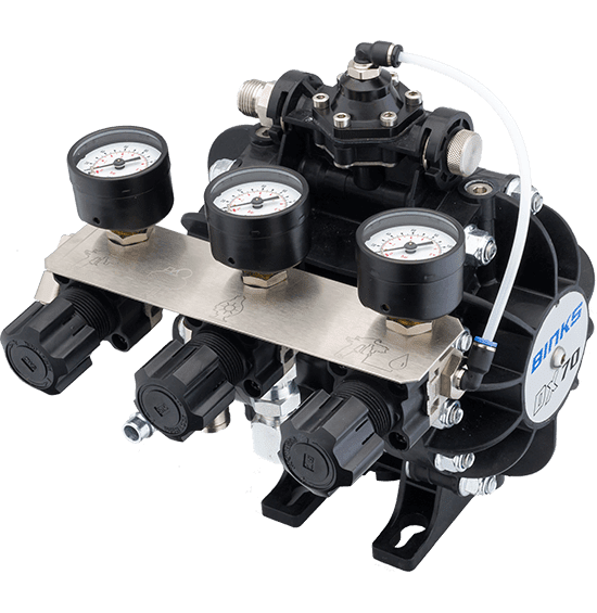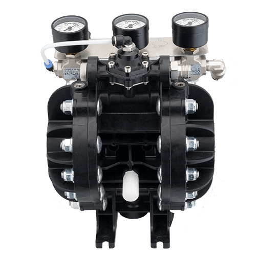 - The unique diaphragm design and built-in material pressure regulator ensure consistent pressure and easily adjustable material flow.