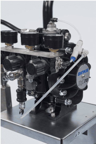The DX70 pump is ideally suited for ALL TYPES of spray gun technologies including Conventional, Compliant Trans-Tech©, HVLP, LVLP and Electrostatic - Low Pressure.
