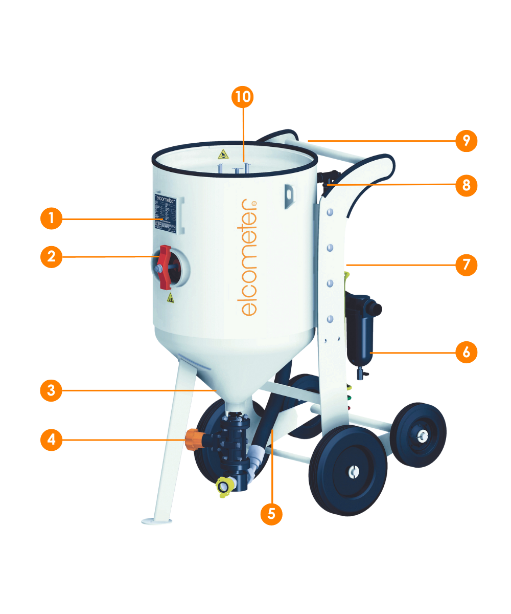 Elcometer Performance – 14" 40 litre (355 mm, 1.41 cu ft) blast machine with 12 bar (174 psi), Kit 2 with General Valve
