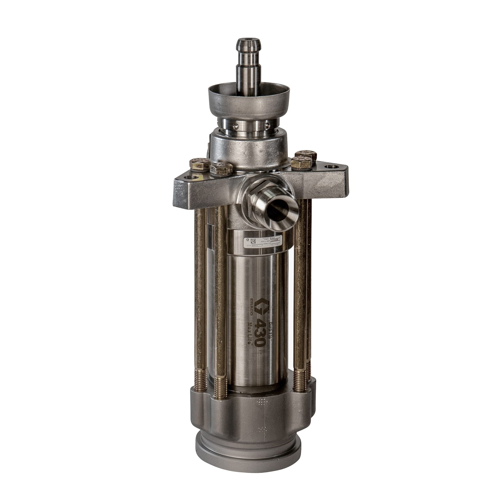 Dura-Flo 1800 (430 cm³) displacement pump, stainless steel, 4 leather, 3 UHMWPE neck/3 UHMWPE, 2 leather piston packings