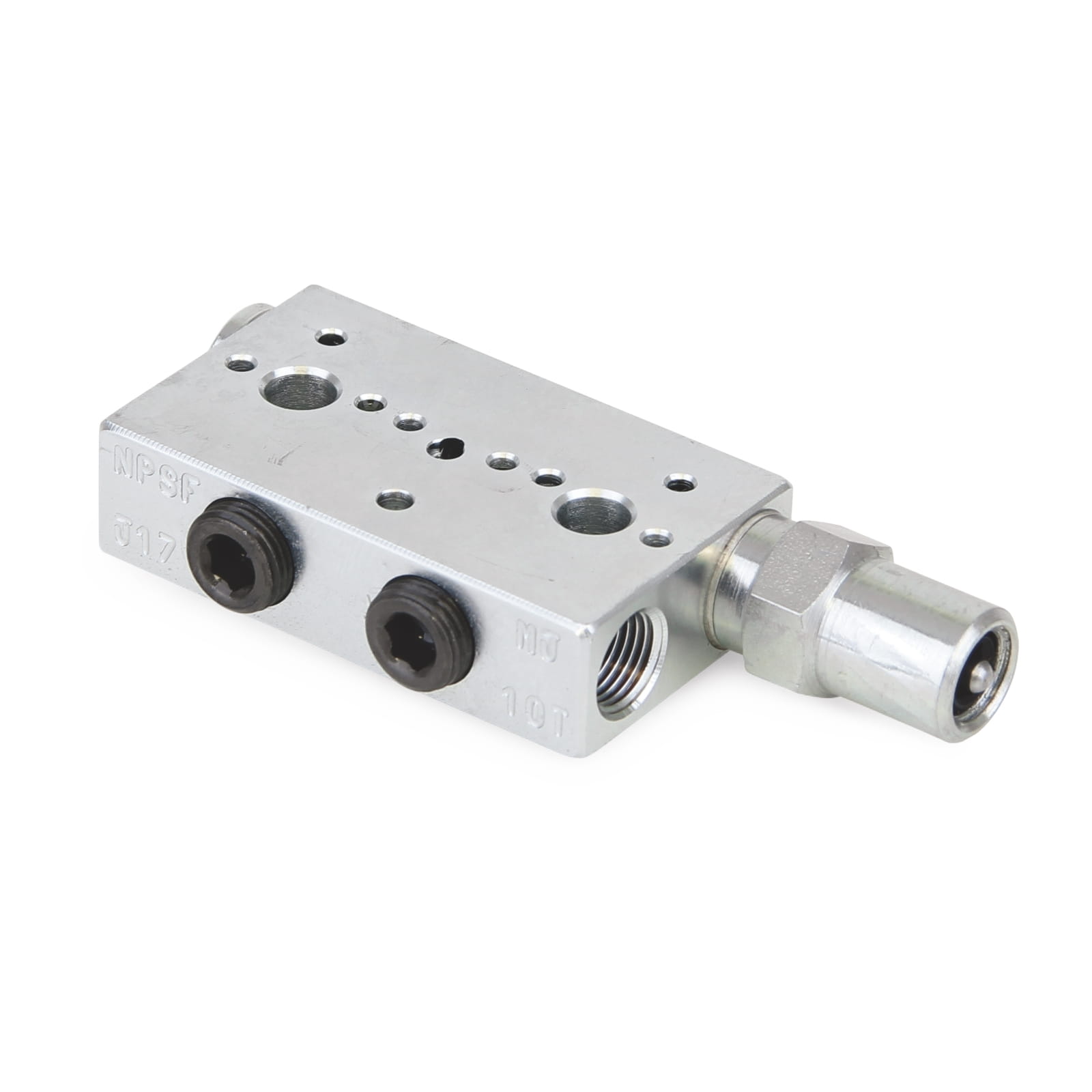 Trabon® inlet manifold of the MJ-Flo series with right-sided cycle indicator pin - MJ-15S - 0.49 cm³ (0.030 in³)