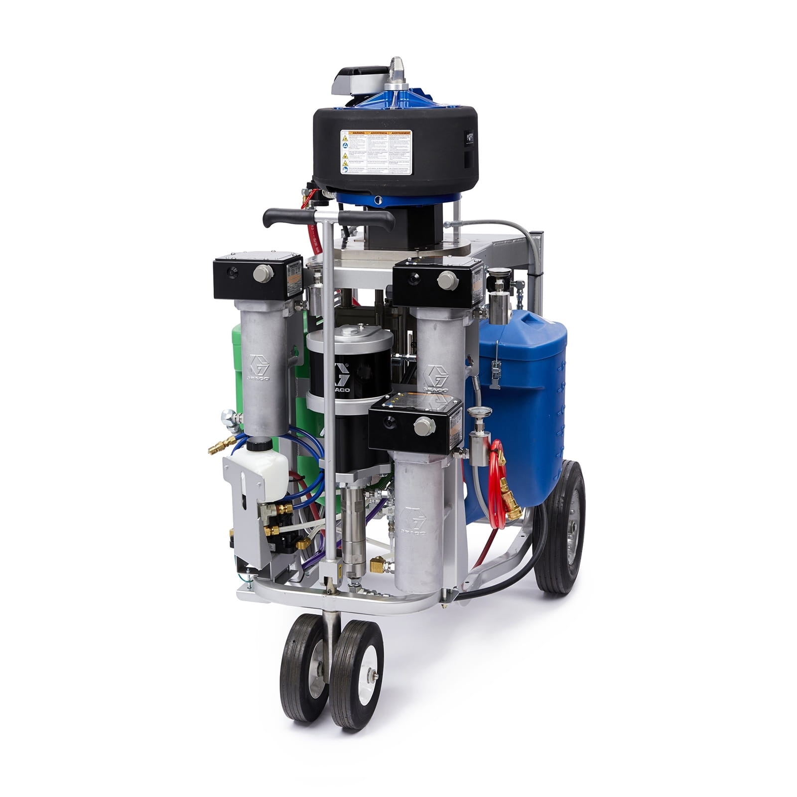 | Includes | 7 gallon hoppers, XTR+ gun, 35 ft integration hose and static mixer, Merkur flush pump, Viscon HP heaters, hose heat circulation kit, remote carriage, PressureTrak |
