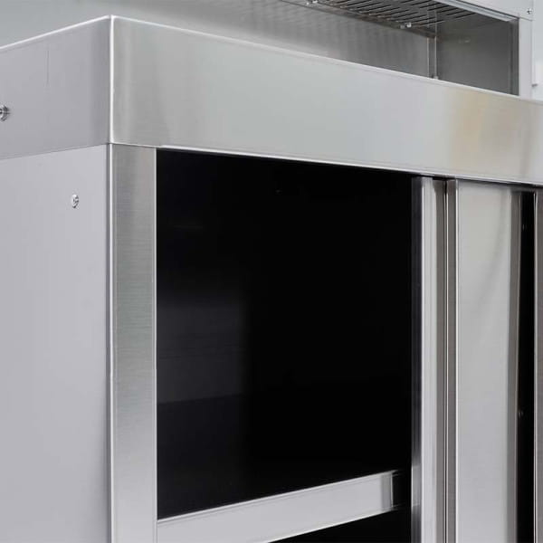 High-quality stainless steel work tables for paint mixing rooms. Made of polished stainless steel to prevent contamination of the paintwork, to prevent rusting and to allow easy cleaning. Fume extraction over the entire work surface at a height of ± 20 cm. Available in two sizes: 120 cm and 180 cm. You can also choose between a version with or without doors. The stainless steel work tables are also available without an extractor hood.