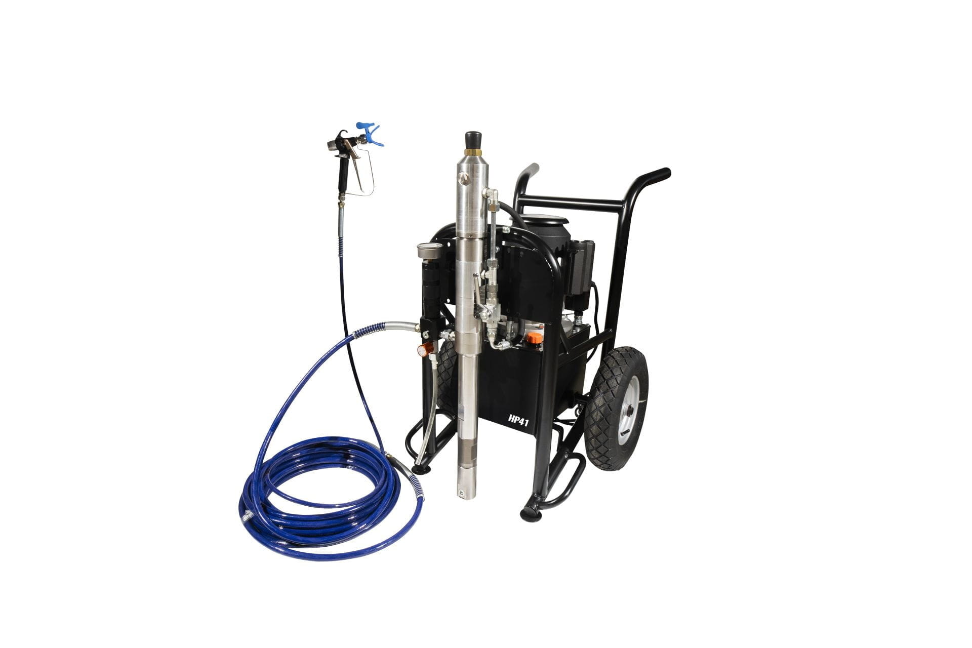 The HP41 hydraulic piston pump is available as a basic system or as a fully equipped SprayPack Airless. Both variants are based on the same pump unit and differ only in terms of the scope of delivery.
