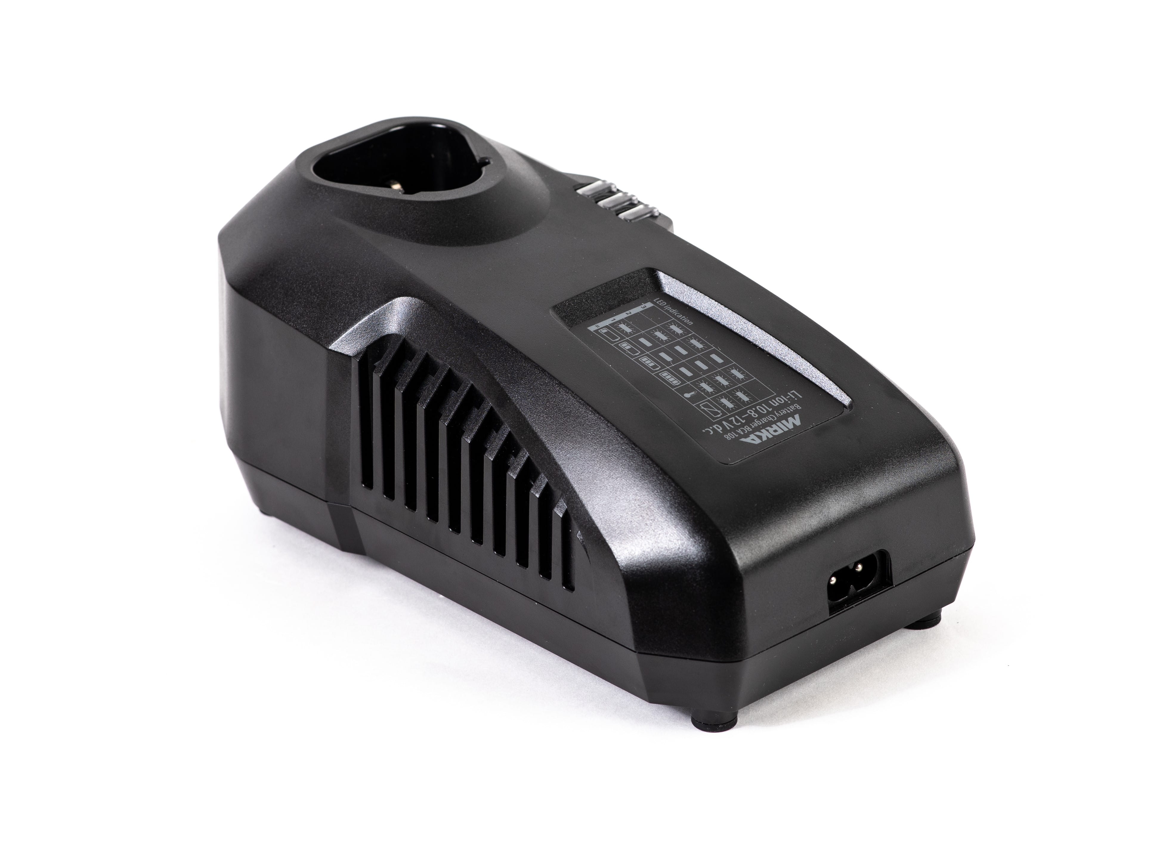 Battery charger BCA 108 max 12V. Power cable not included. Charging time is approx. 45 minutes for 2.5 Ah batteries and 1 hour 30 minutes for 5.0 Ah batteries. .