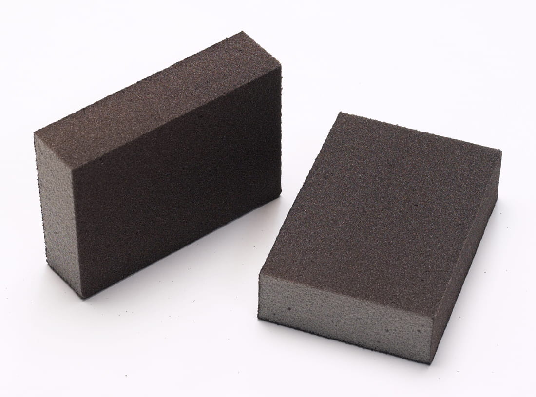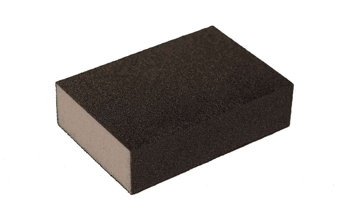 Durable and waterproof sanding sponge with a hard foam plastic core, entire surface coated with grains. Suitable for sanding 90 degree angles.