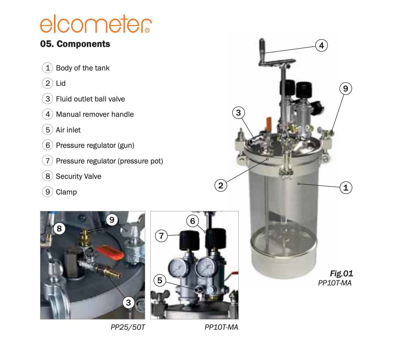 - 1x recipiente a presión de 10 l con tapa y salida lateral