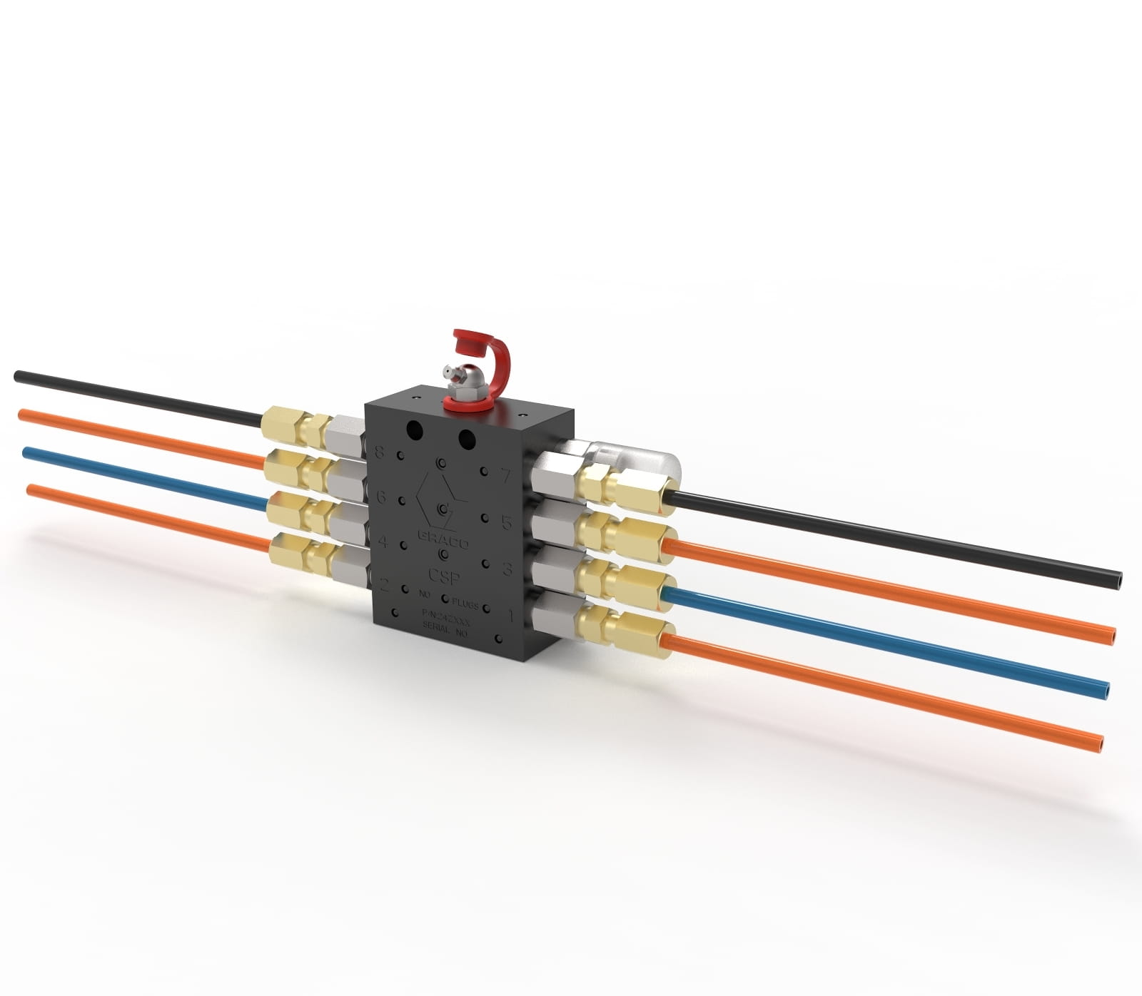 - Los conjuntos utilizan la tecnología de distribución inicial CSP (Compact Series Progressive) para dosificar la cantidad de grasa que se envía a los puntos de lubricación.