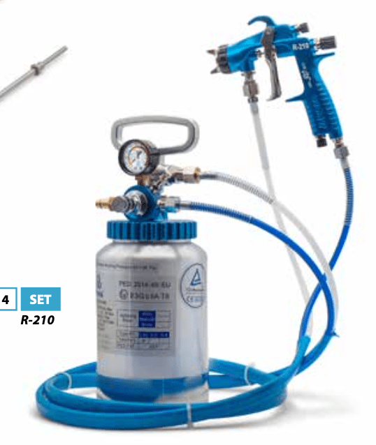 y una pistola de aire comprimido R-210P de 1,5 mm.