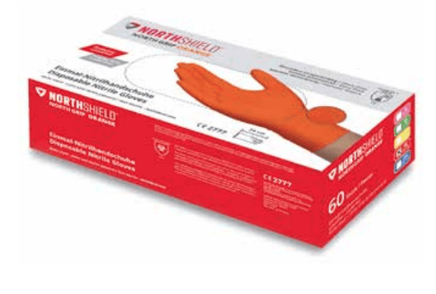 Le modèle NORTHSHIELD® NORTH GRIP ORANGE est un gant jetable en nitrile particulièrement résistant à l'usure et à la déchirure. Spécialement conçu pour les ateliers, ce gant possède une texture de surface spéciale pour une excellente prise sur le matériel de travail. Il offre à l'utilisateur une protection optimale de la peau contre la saleté, la crasse, l'huile, mais aussi contre les produits chimiques (légers) et les solvants lors des travaux de montage.