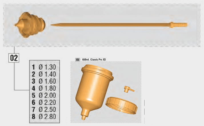 Aiguilles et buses pour pistolet pulvérisateur Classic Pro XD – Des pièces de précision pour les exigences les plus élevées