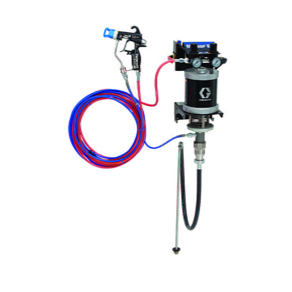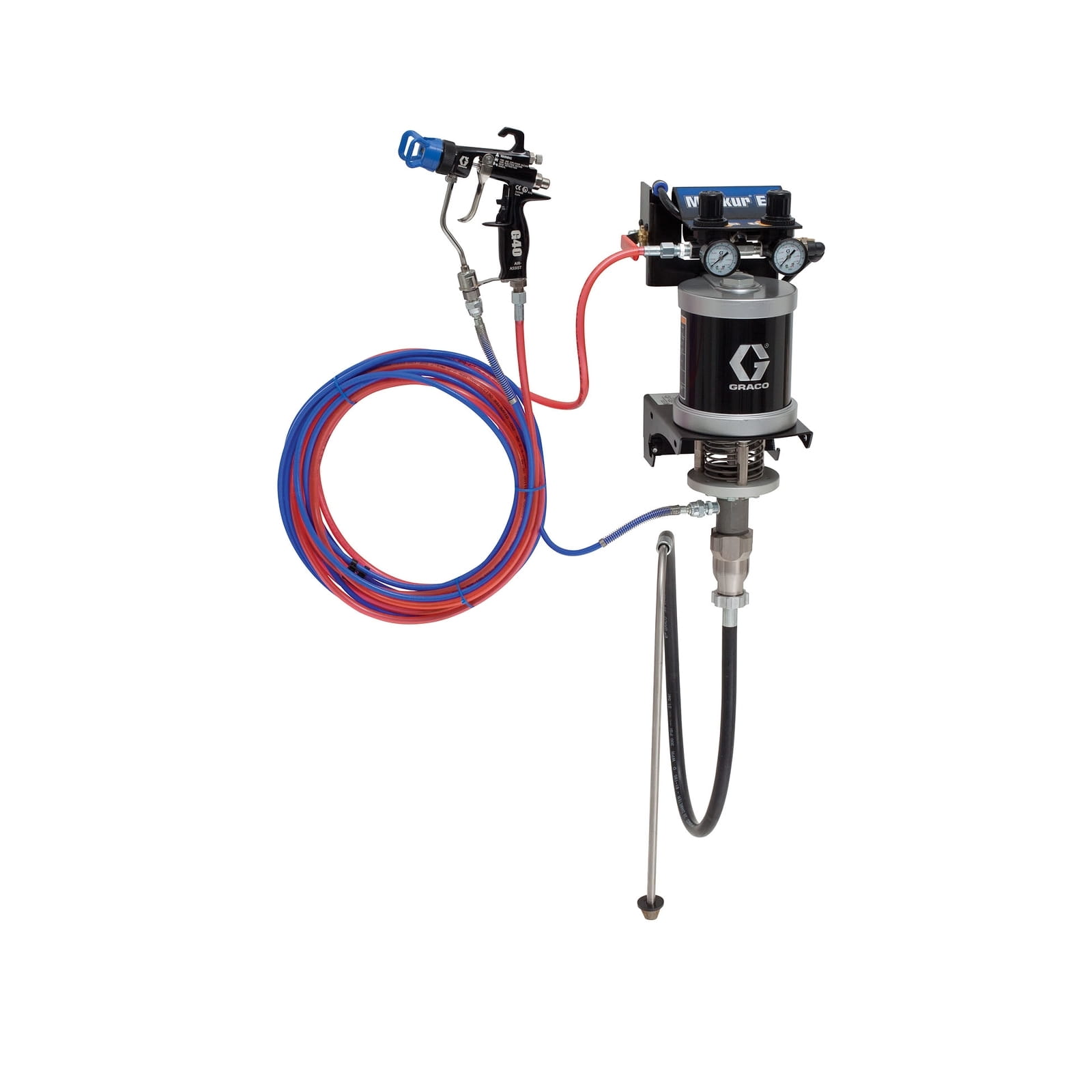 Système complet Mercury ES 30:1 à assistance pneumatique, débit de produit : 1,5 l/min (0,4 gal/min), montage mural, pistolet PerformAA 50, tuyau d'aspiration, acier inoxydable