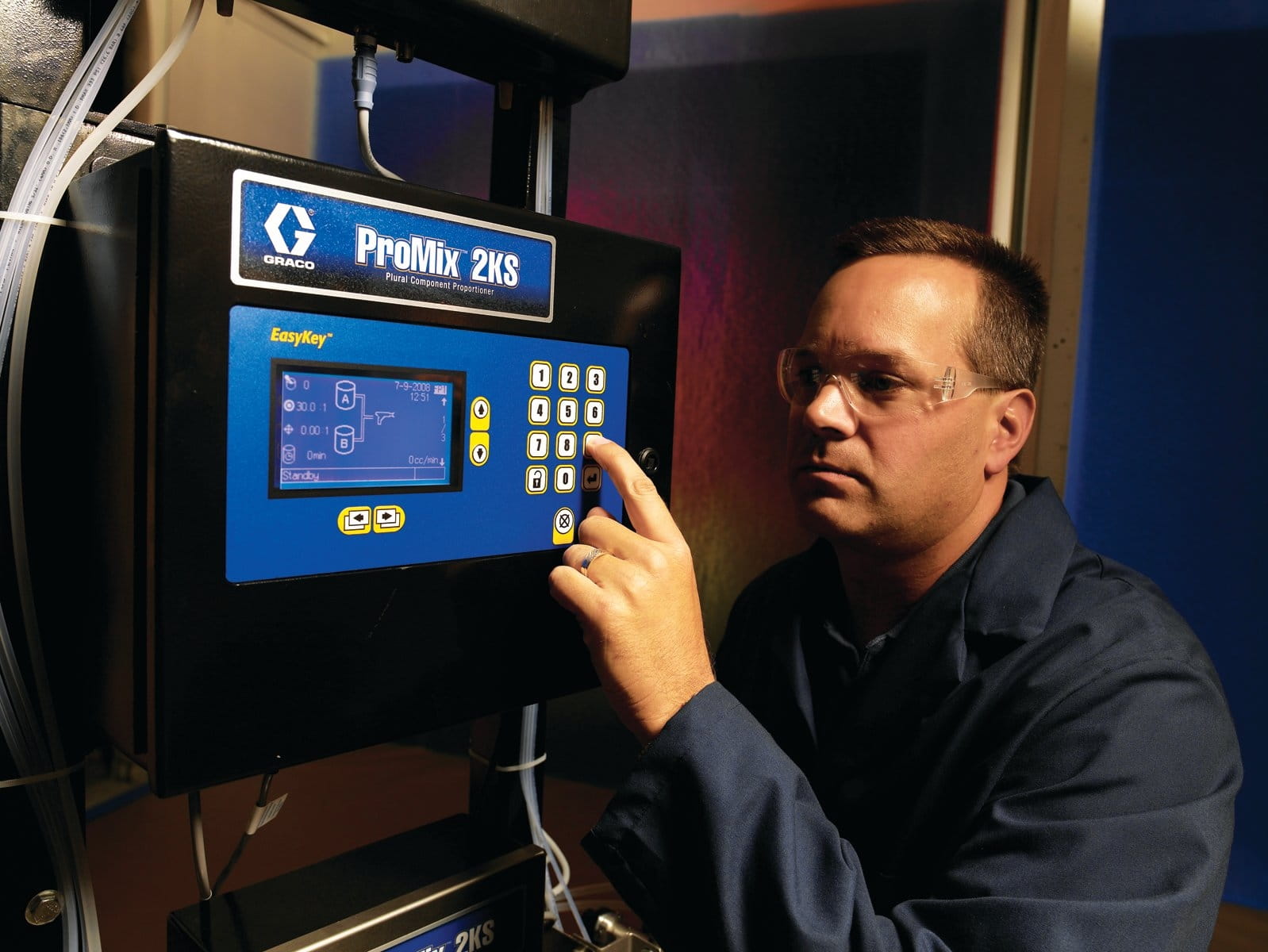 Anwenderfreundliche elektronische Dosieranlage für unterschiedlichste lösemittel- und wasserbasierte oder säurekatalysierte Materialien: Das ProMix-2KS-System ermöglicht ein extrem präzises Einstellen des Mischverhältnisses – für überlegene Ergebnisse im manuellen oder automatischen Betrieb. Effiziente Überwachungs- und Meldefunktionen mit effizientem Farbwechsel für weniger Materialverschwendung.