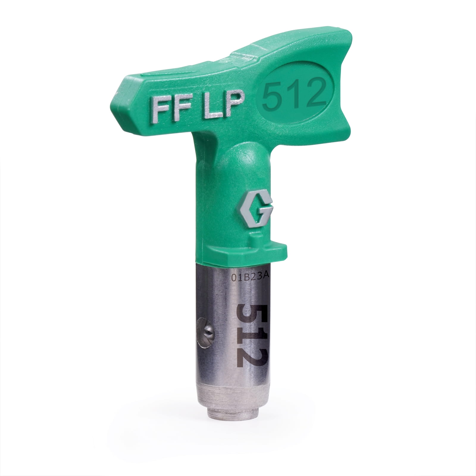 Spray at up to 50% lower pressure with the Reverse-A-Clean (RAC) 512 Fine Finish Low Pressure (FF LP) RAC X SwitchTip. This fine finish tip produces a 10 to 12 inch Fan pattern and has a 0.012 inch orifice, ideal for finishing materials. Reverse the SwitchTip to easily clear clogs.