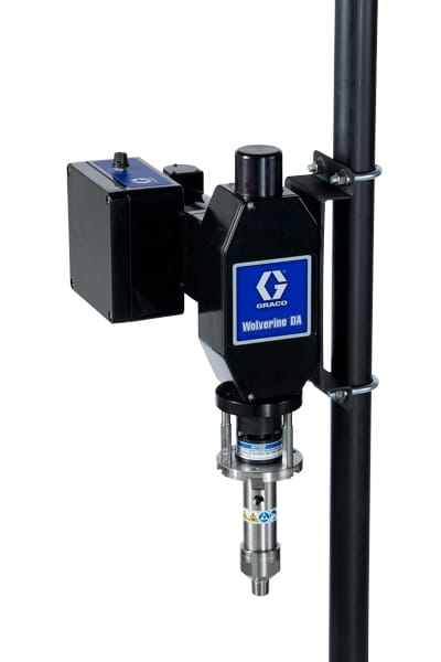 Die Wolverine DA verwendet einen doppeltwirkenden Pumpenmaterialabschnitt, der dazu beiträgt, den doppelten Durchfluss einer ähnlichen einfachwirkenden Pumpe zu erreichen. Selbstansaugend, so dass die Pumpe sich selbst von eingeschlossener Luft befreien und den Betrieb wieder aufnehmen kann, ohne dass er sich physisch an der Pumpe befindet. Die Materialabschnitte sind universell und können mit pneumatischen und elektrischen Antrieben eingesetzt werden. Der Wolverine DA wird direkt auf einen Mast montiert, so dass kein Ständer erforderlich ist. Die Pumpe verwendet einen bürstenlosen Motor, der dazu beiträgt, die Leistungsaufnahme auf einem Minimum zu halten, und verfügt über eine variable Drehzahlregelung direkt am Motor.