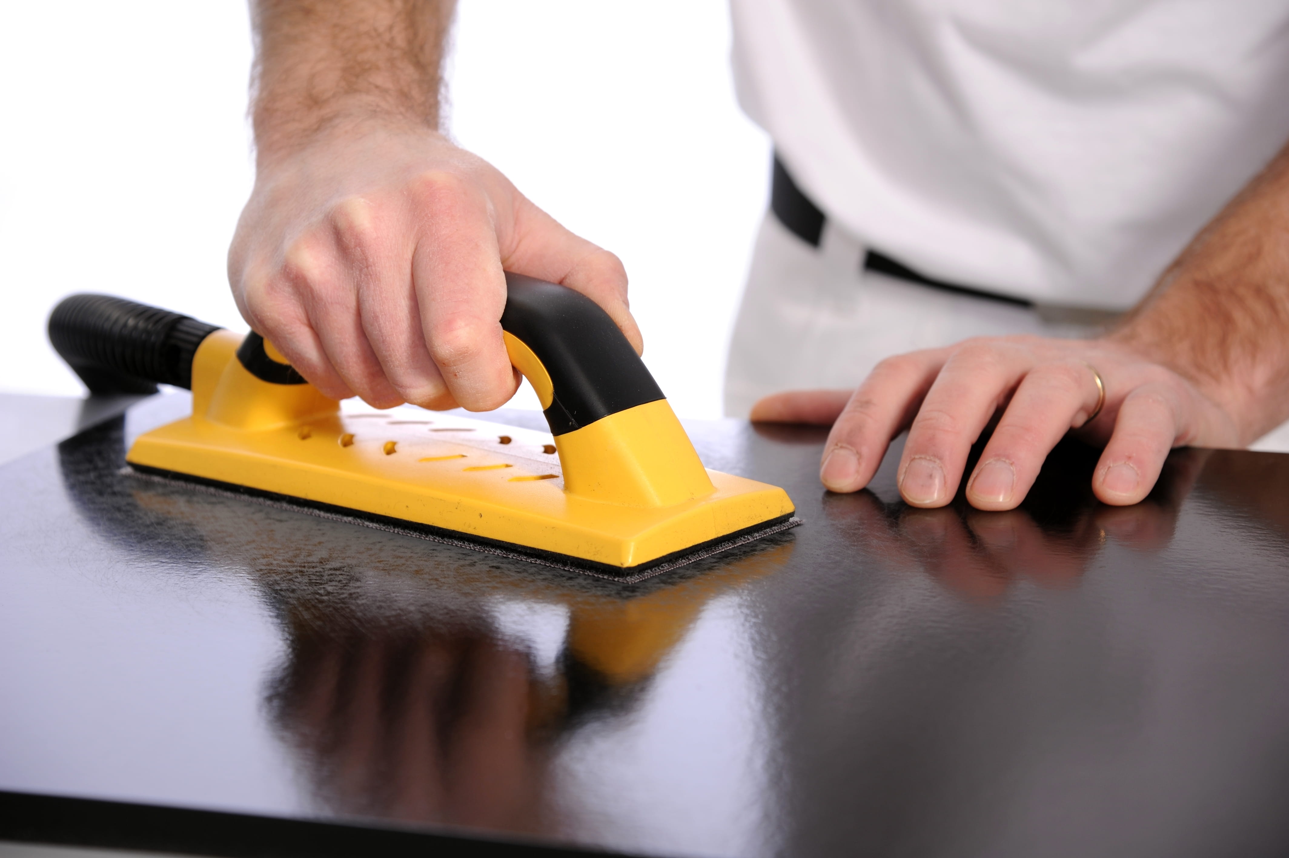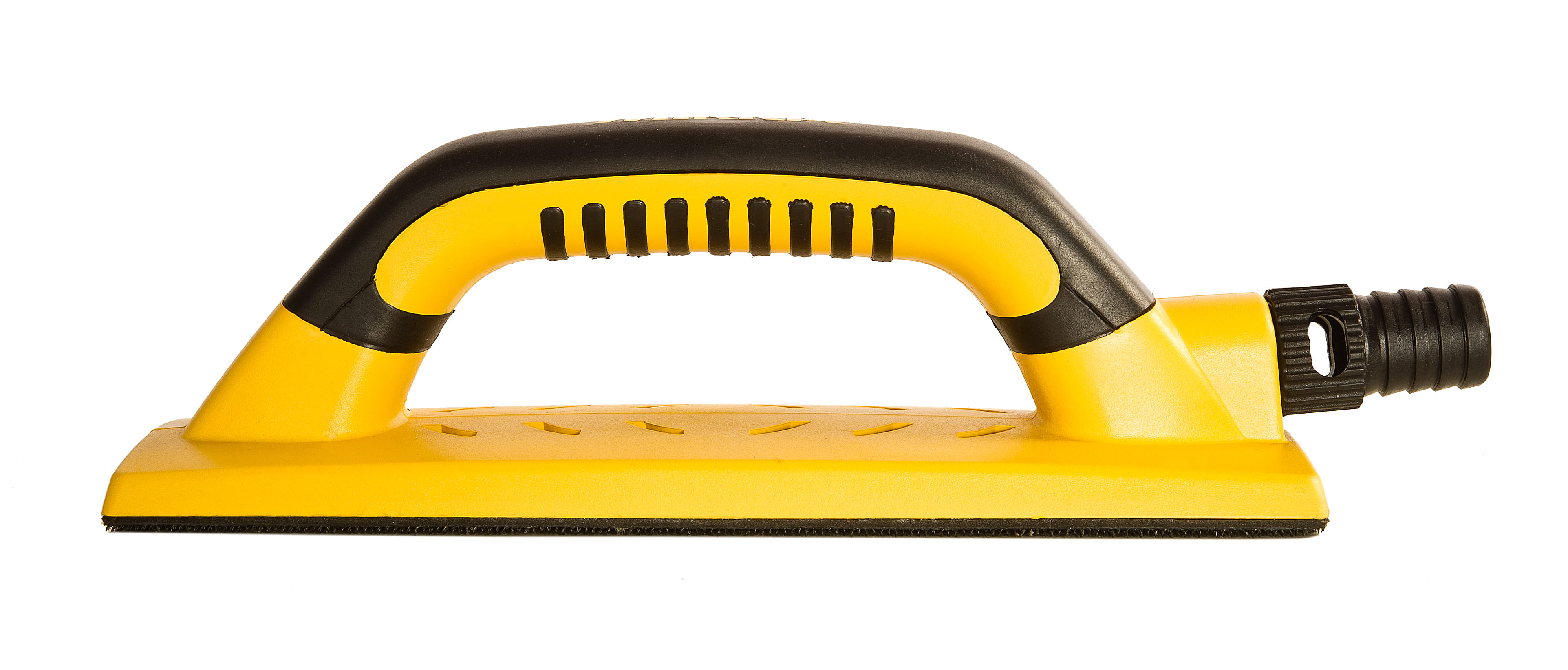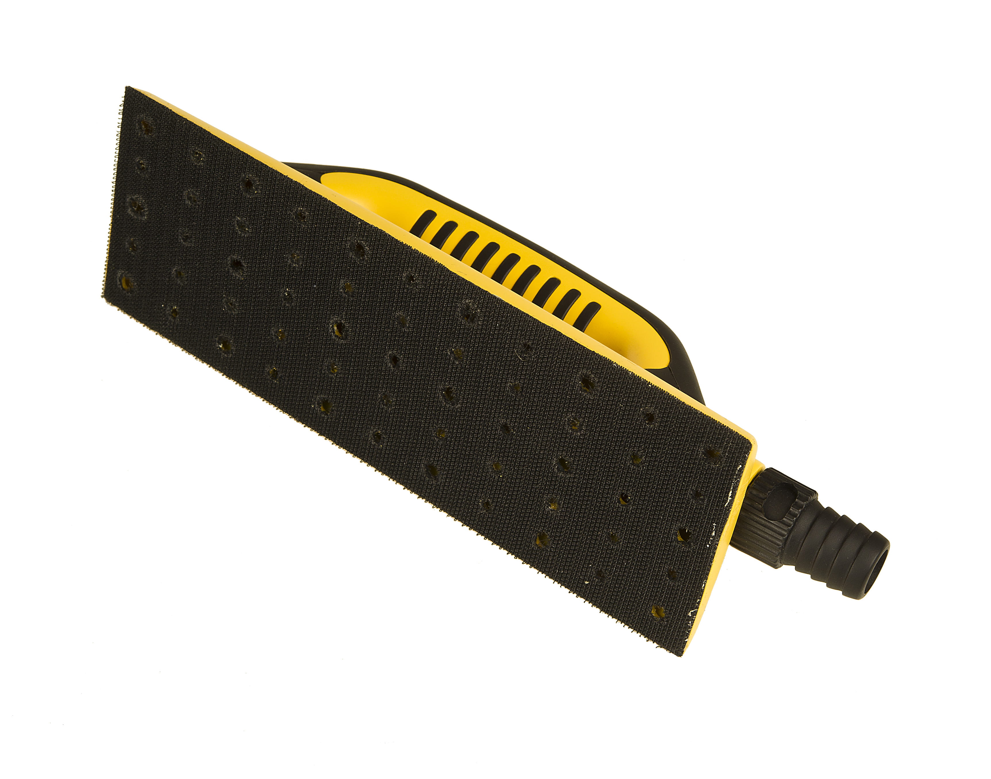The 80 x 230 mm size of this Mirka® Hand Sanding Block makes it perfect for putty sanding because it reduces the risk of tilting during use. There’s an easy to access 20mm hose connection and an adjustable suction valve to allow for optimised dust extraction and air flow and help the tool move easily over the surface. The plate features 55 holes precisely placed to ensure effective dust removal and the grip fastening system means there’s no time consuming clamps to deal with. There’s even an ergonomic, soft-feel, two handed grip and the eye catching design in bright yellow mean it’s always easy to find! Mirka® Hand Sanding Blocks are specially designed for sanding by hand in combination with Mirka’s revolutionary net-sanding products, although they can also be used with other grip abrasives. To ensure dust-free sanding the hand sanding block simply needs to be connected by hose to a dust extraction system.