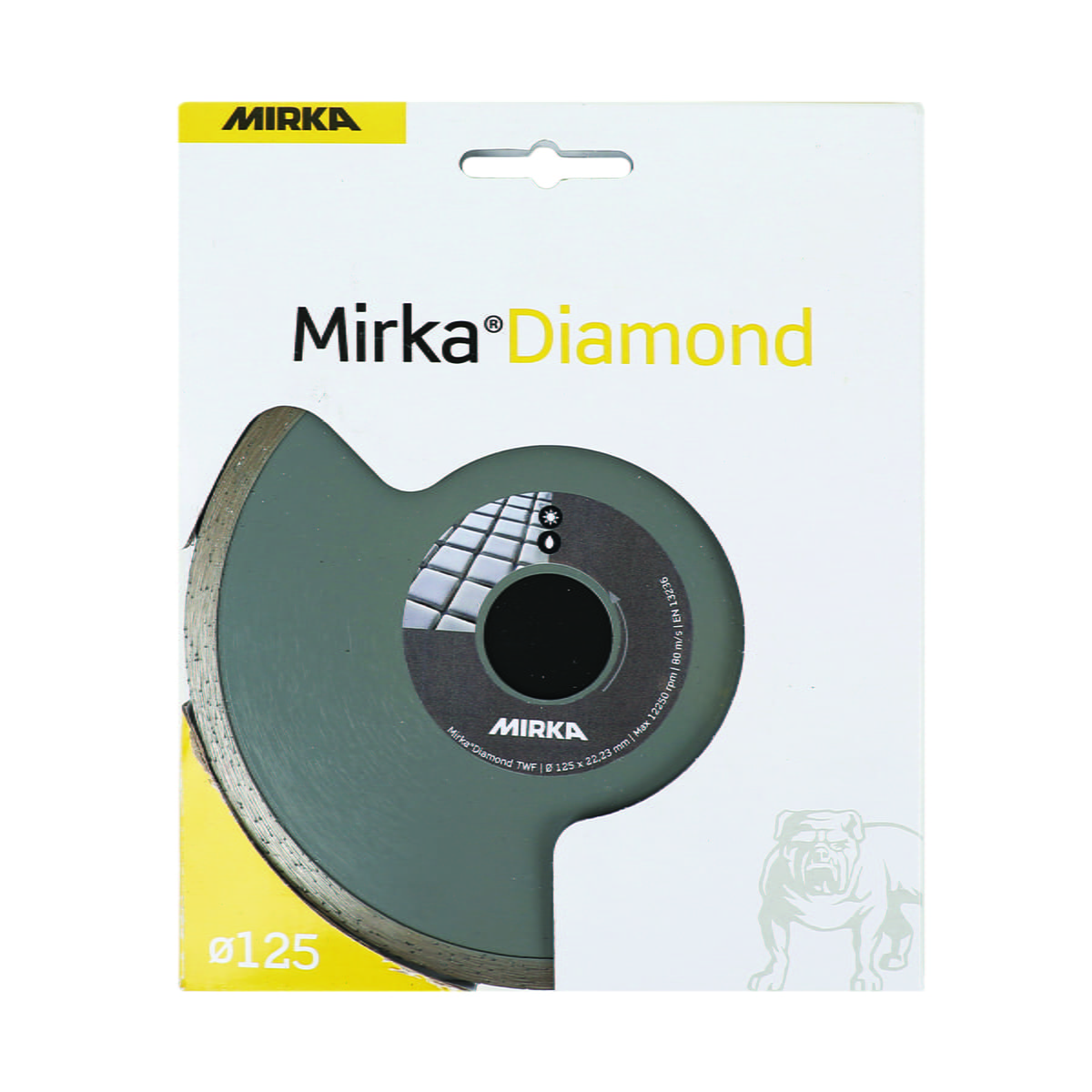 Mirka Diamond Wheel 125x22,2mm TWF Mirka Diamond wheel TWF for cutting tile, clinker and ceramic tile. 5 mm diamond segment. Suited for both wet and dry cutting.