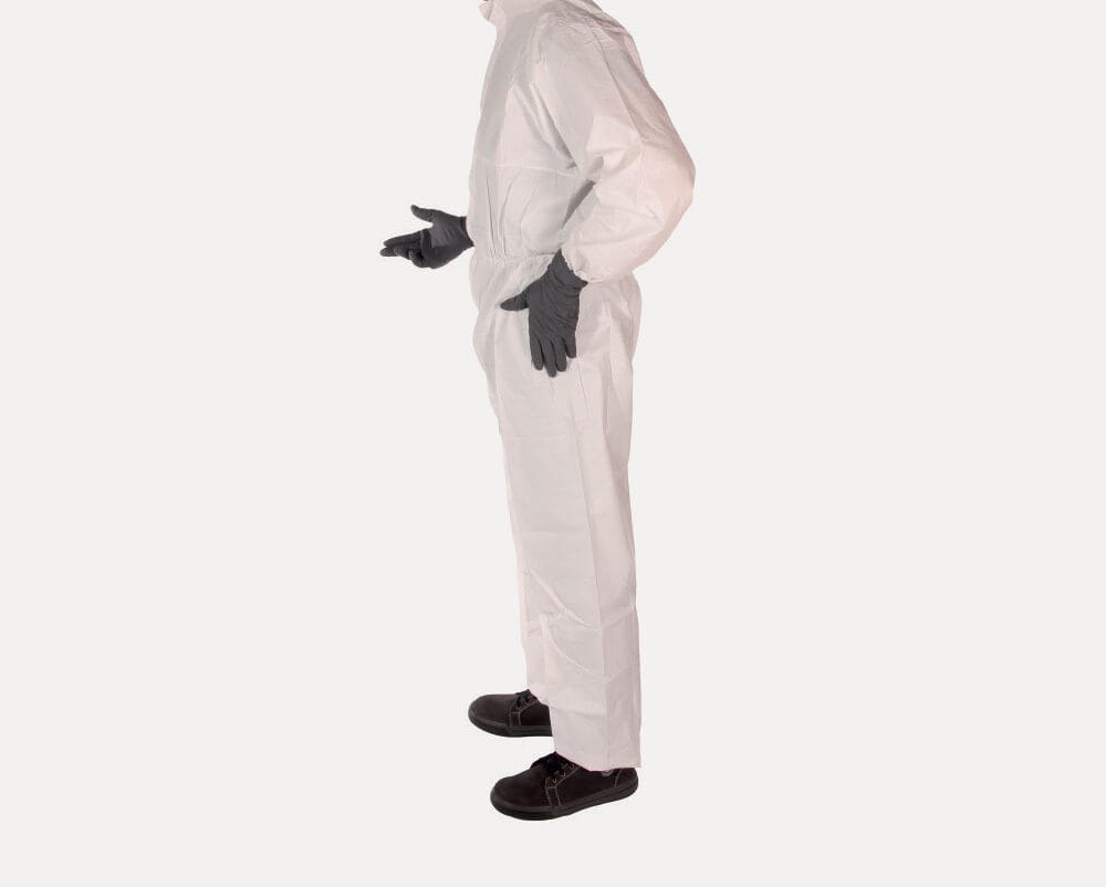 - Biały kombinezon ochronny jednorazowy z mikroporowatą laminacją