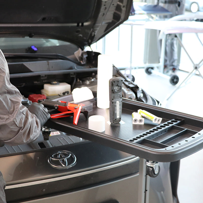 Praxis-Tipp: Platzieren Sie häufig genutzte Werkzeuge in den vorgesehenen Halterungen (z. B. Schraubendreher oder Stecknüsse). So reduzieren Sie Suchzeiten erheblich und vermeiden unnötige Bewegungen.